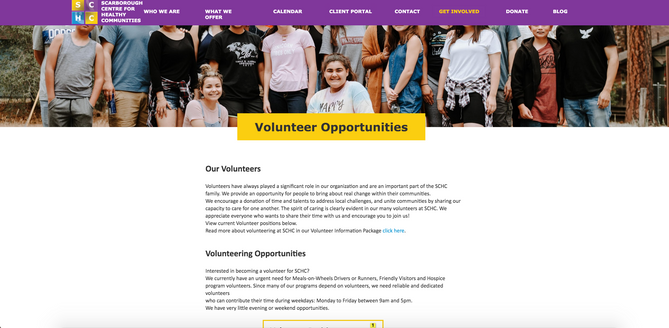 Scarborough Centre for Healthy Communities was looking to understand their audience and why they are visiting the website. They are aware that the three key offerings are volunteers, donations and finding medical resources like doctors. They are unsure if users are able to find this information easily, whether or not they are able to understand the information, and how many times each user returns to the site. SCHC is looking for UX/UI designers to attract donors, volunteers, and prospective clients with a professional and direct site. My team and I have spent the past few months researching and interviewing to discover what consumers were really looking for, and the best way to present that information.